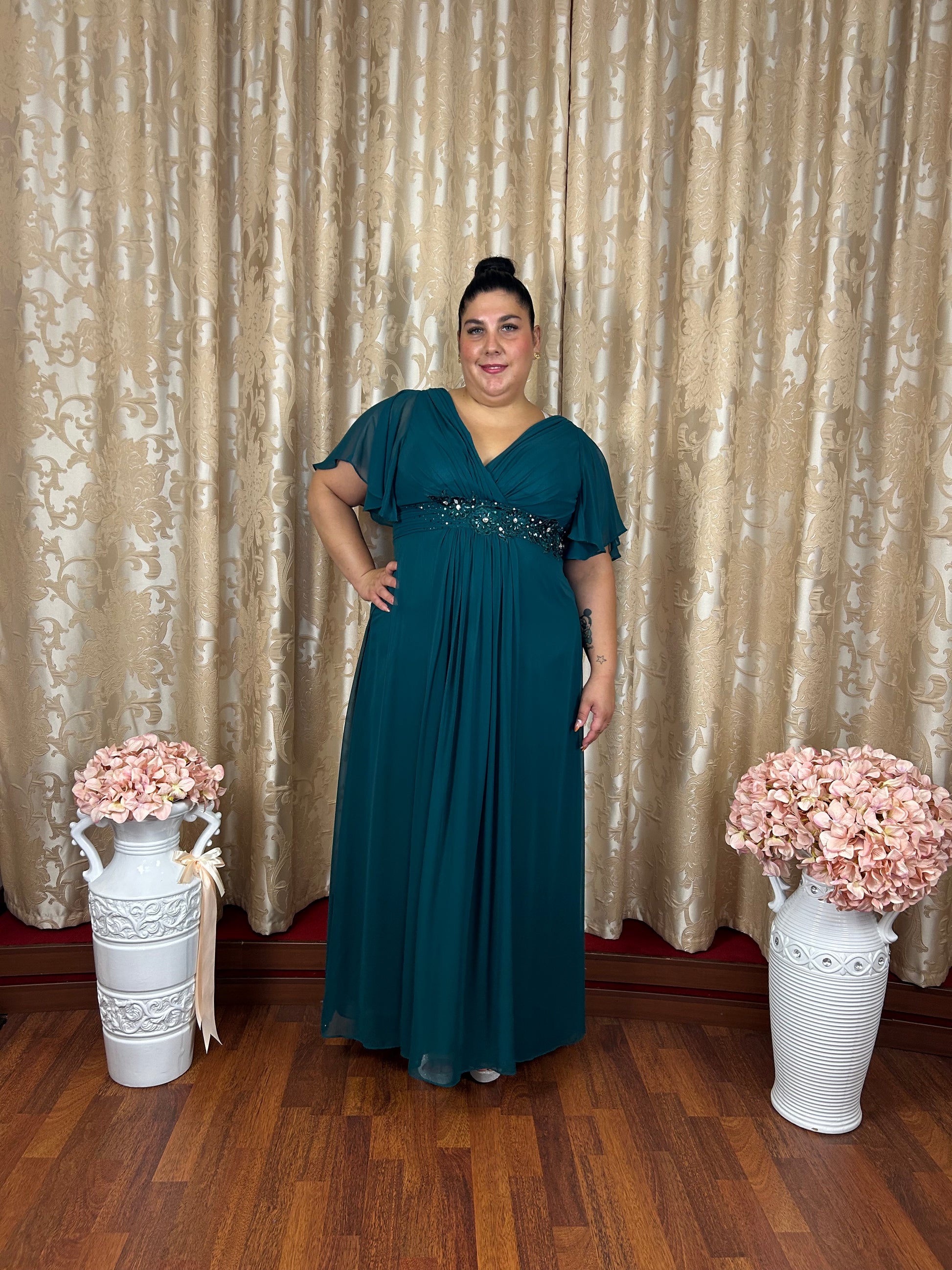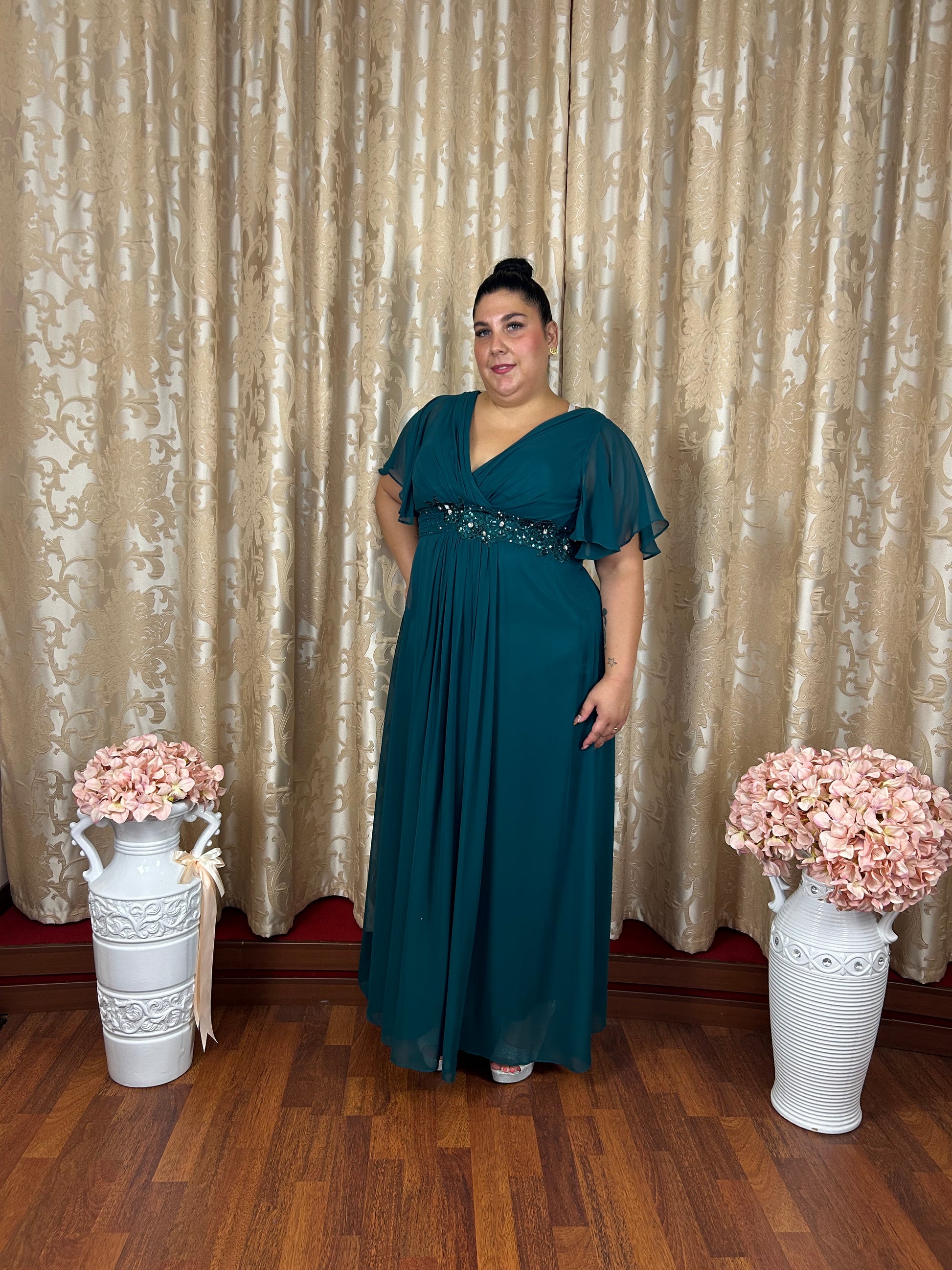 Abito da Cerimonia Curvy – Verde Petrolio Brillante 💚