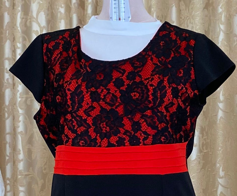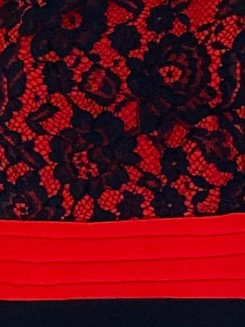 Abito tubino linea Curvy, dal fascino senza tempo, perfetto per valorizzare le forme in ogni occasione speciale. Realizzato in tessuto Cady elasticizzato bicolore, abbina l’eleganza del nero al fondo rosso Il corpino in pizzo elasticizzato avvolge delicatamente il décolleté e dona un tocco di femminilità, mentre la linea tubino scolpisce la silhouette con armonia e classe.