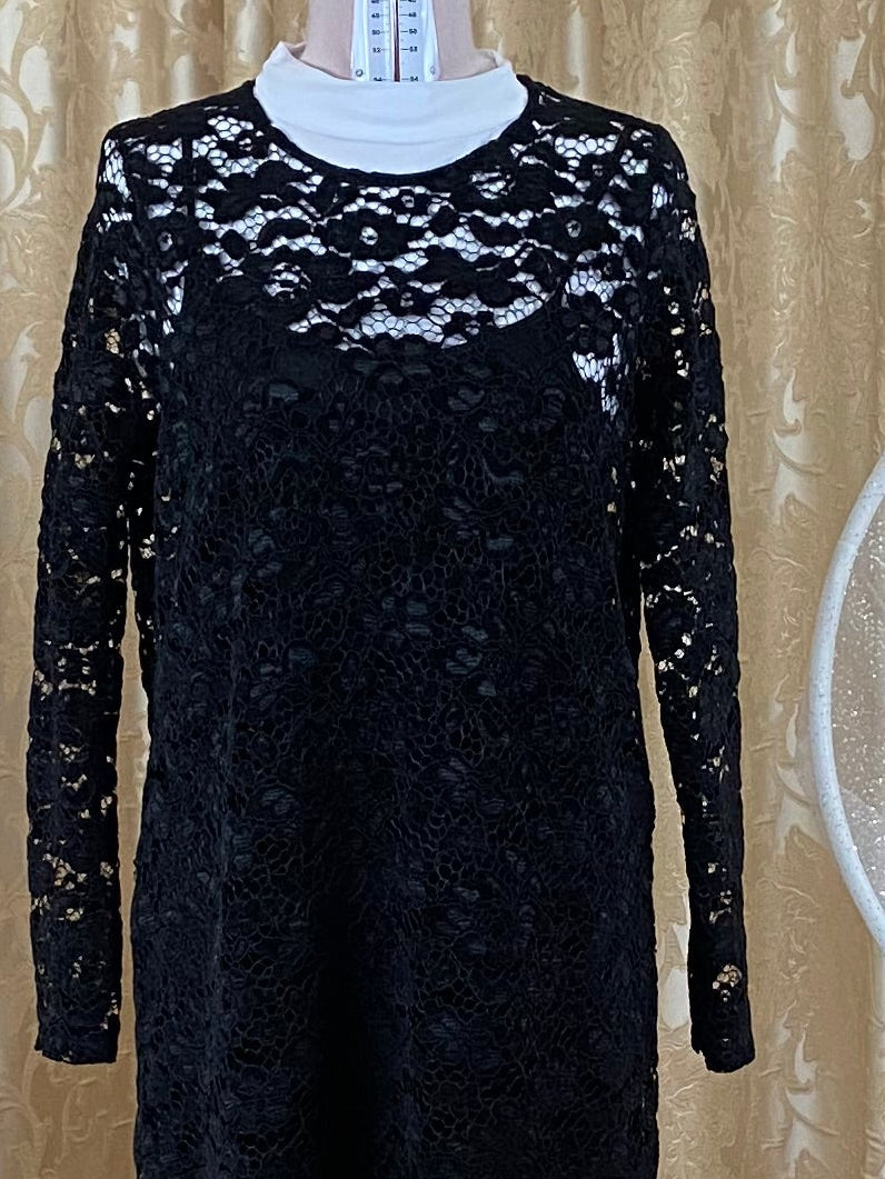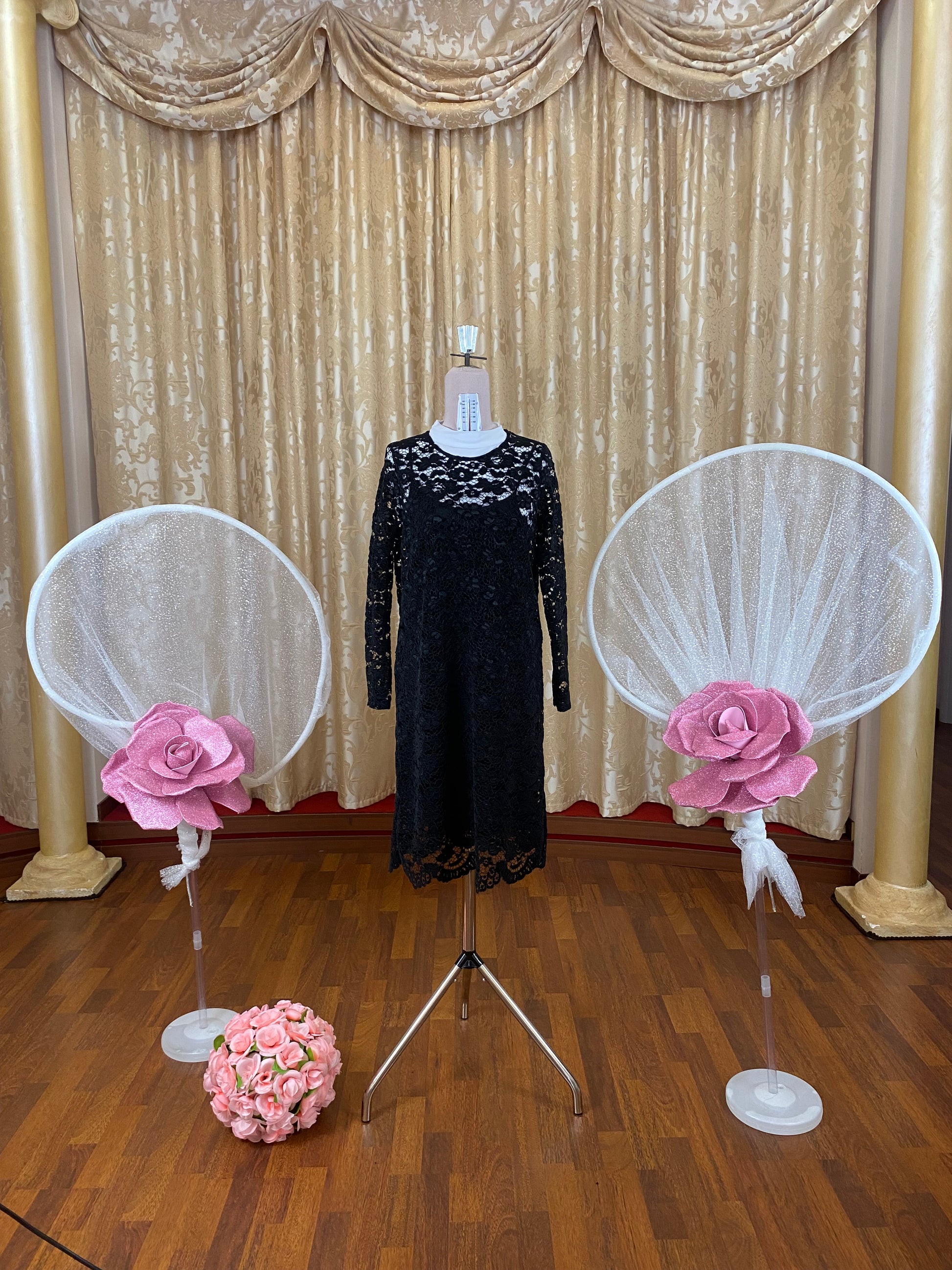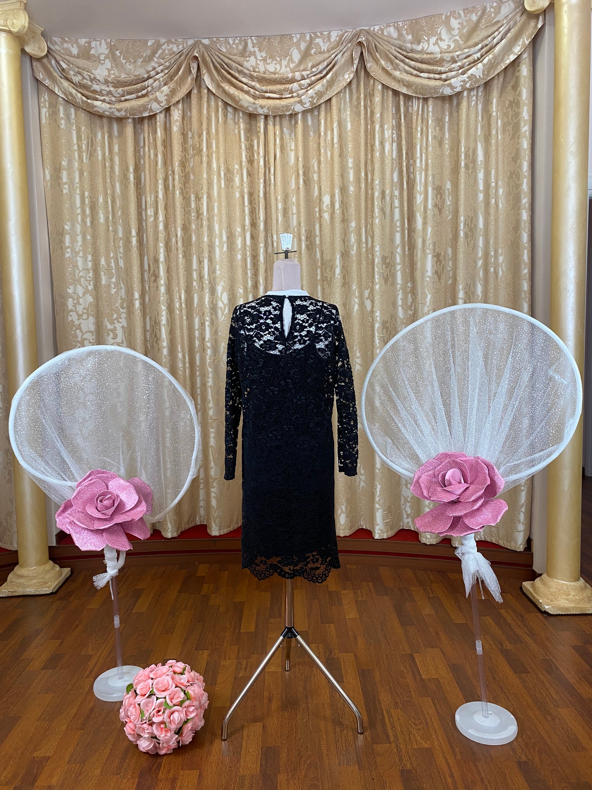 Il **tubino** presenta una **manica in pizzo trasparente**, che dona leggerezza al design e un tocco di mistero. La vestibilità è studiata per slanciare la figura, rendendolo perfetto per cerimonie, serate di gala o eventi speciali.