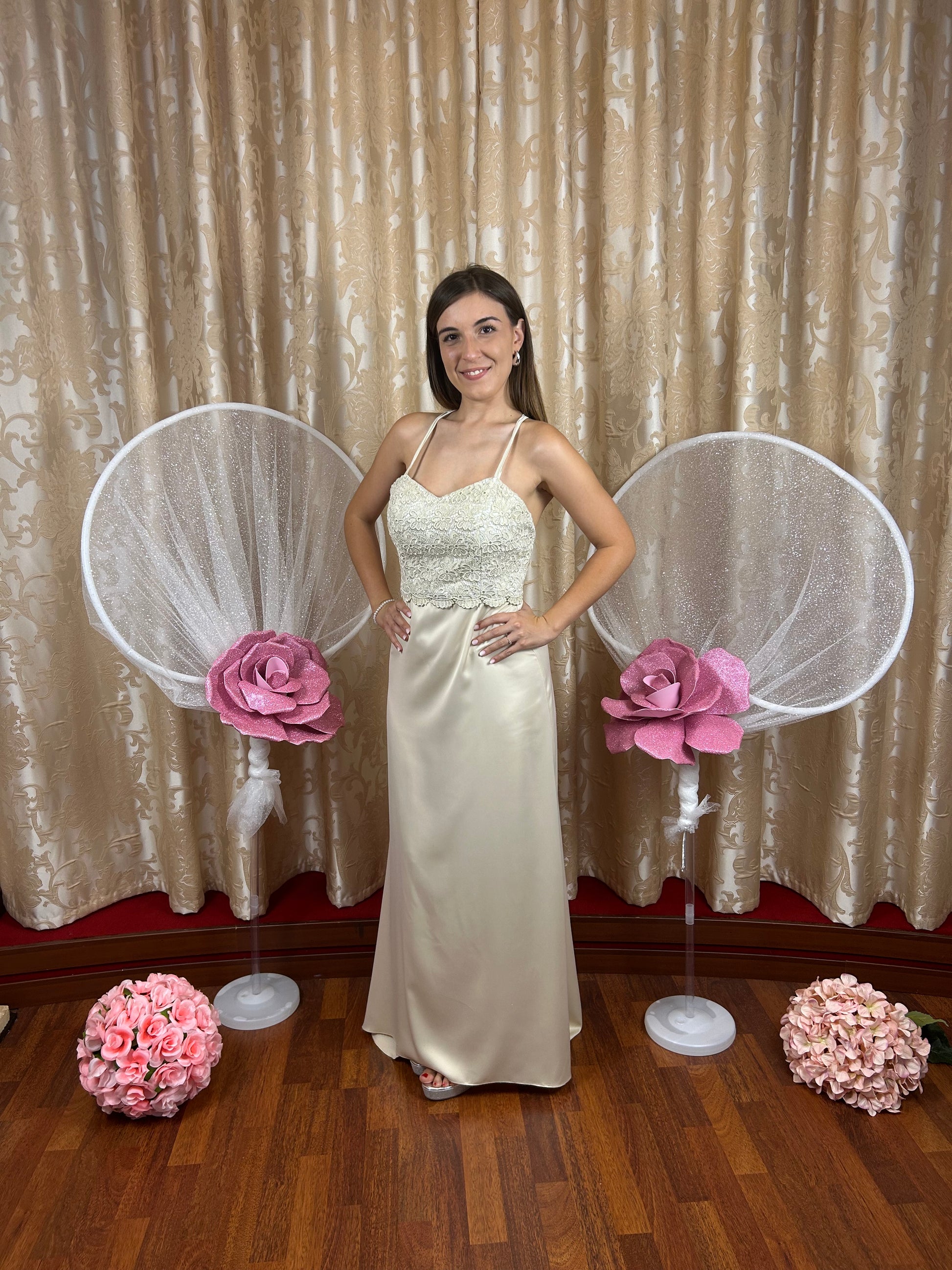 Taglia 42, vita 70 cm torace 84cm, fianchi 84, altezza cm 106 cm